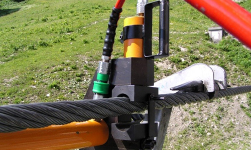 Outillage hydraulique en alliage léger de contrôle et de déplacement des pinces de télésiège fixe avec centrale hydraulique équipée d’une automate industriel gérant les différents cycles de fonctionnement.